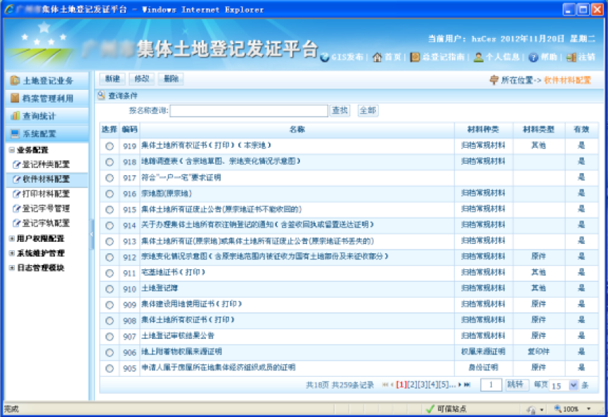 主要功能有圖形管理子平臺(tái)(數(shù)據(jù)應(yīng)用管理、數(shù)據(jù)查詢統(tǒng)計(jì)、數(shù)據(jù)編輯、打印輸出),土地登記辦證子平臺(tái)(登記業(yè)務(wù)辦理、查詢、統(tǒng)計(jì)、輔助功能),登記檔案管理子平臺(tái)(檔案移交接收、檔案維護(hù)、檔案利用、檔案密級(jí)管理),系統(tǒng)配置管理(用戶管理、業(yè)務(wù)工作流程配置、系統(tǒng)配置、日志管理)。